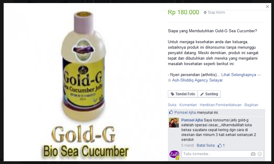 Gold-G Sea Cucumber Jelly (Ekstrak Gamat/Teripang dalam bentuk jeli)