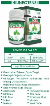 HIU Neotensi diproduksi oleh Herbal Indo Utama yang berkhasiat sebagai obat herbal darah tinggi atau hipertensi dan mengobati gejala penyakit darah tinggi